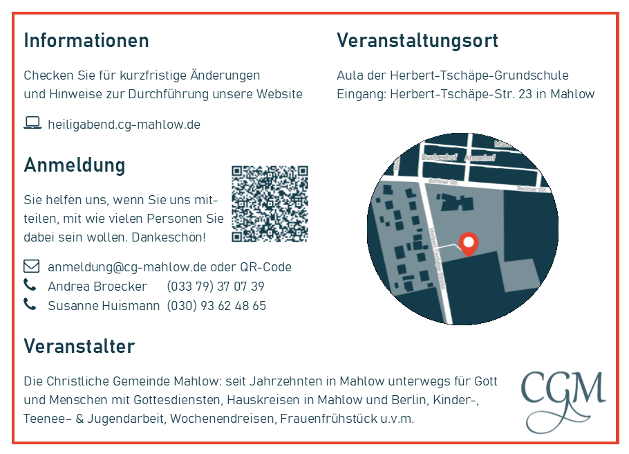 Heiligabend 24. Dezember ab 15.00 Uhr, Dauer ca. eine Stunde